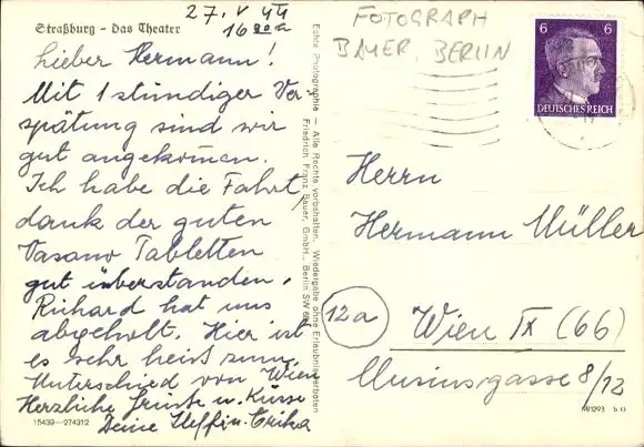 Zustand, siehe Scan, gelaufen, 1944 - ca 5 cm X 3 cm