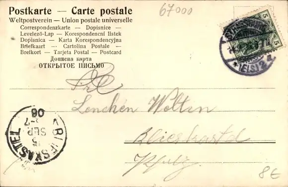 Zustand, siehe Scan, gelaufen, 1906 - ca 14 cm X 9 cm