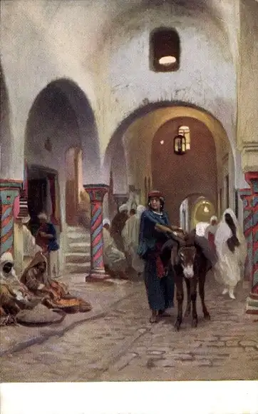 Ak Straßenszene, Frau mit Esel, Händler