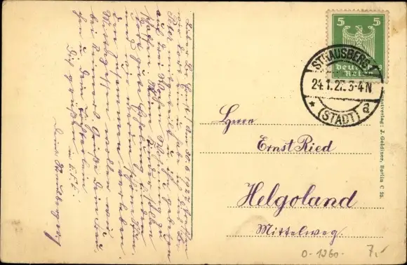 gelaufen 1927, Eckknick links unten, sonst guter Zustand