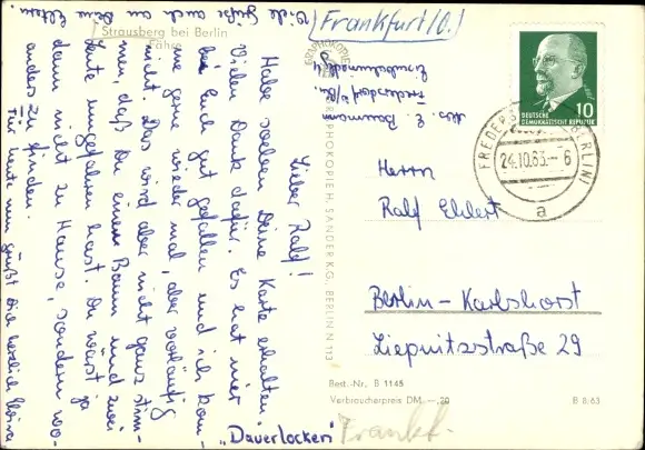 Zustand, siehe Scan, gelaufen, 1963 - ca 15 cm X 10 cm