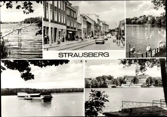 Ak Strausberg in der Mark, Straussee, Große Straße, Fähre auf dem Straussee, Schwäne