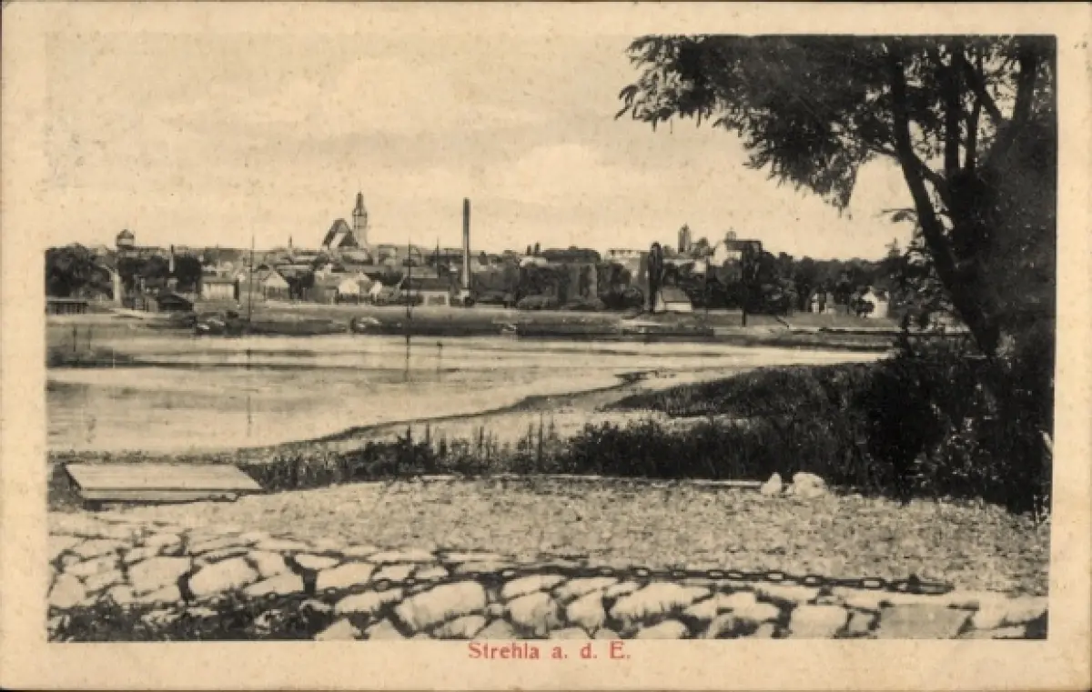 Ak Strehla an der Elbe Sachsen, Blick auf den Fluß und den Ort