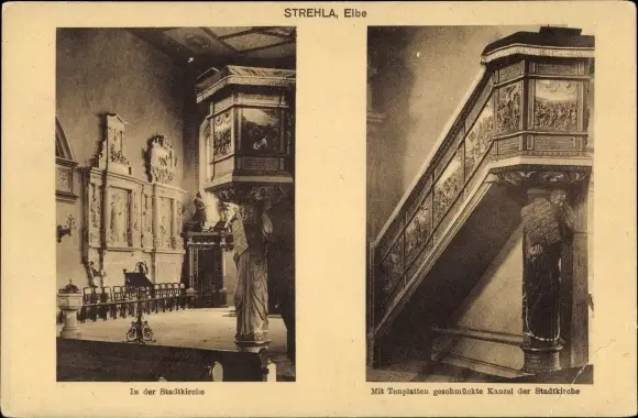 Ak Strehla an der Elbe Sachsen, Stadtkirche, Innenansicht, Kanzel
