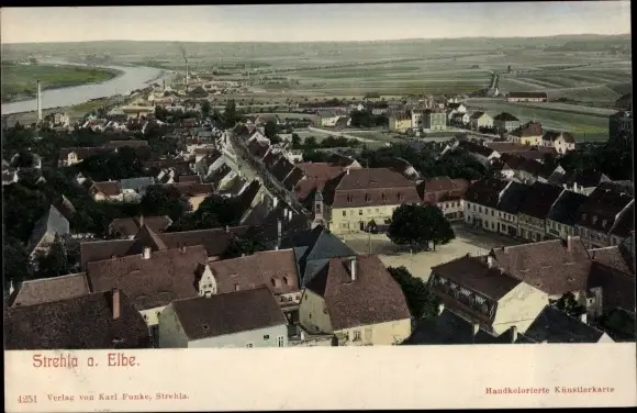 Ak Strehla an der Elbe Sachsen, Teilansicht, Vogelschau