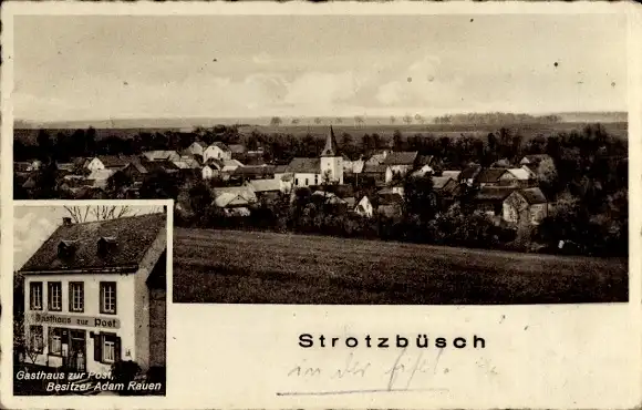Ak Strotzbüsch Daun in der Eifel, Gesamtansicht, Gasthaus zur Post
