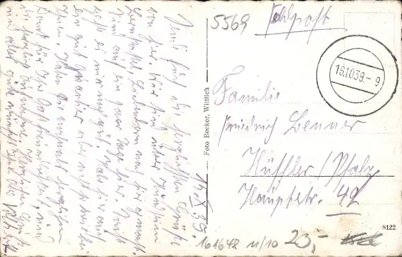 Zustand, siehe Scan, gelaufen, 1939- Inh. Adam Rauen - ca 14 cm X 9 cm