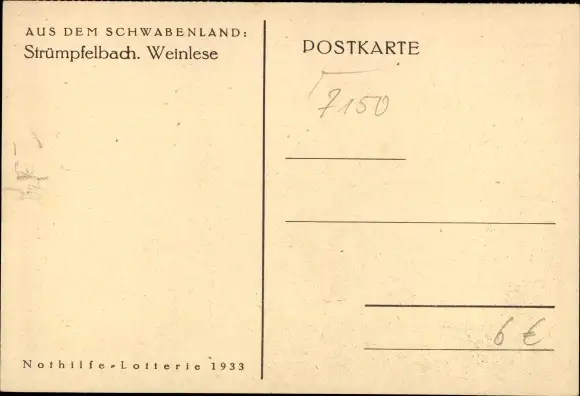 Ak Strümpfelbach Weinstadt in Baden Württemberg, Weinlese, Nothilfe Lotterie 1933