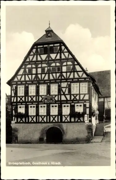 Ak Strümpfelbach Weinstadt in Württemberg, Gasthof zum Hirsch, Fachwerkhaus