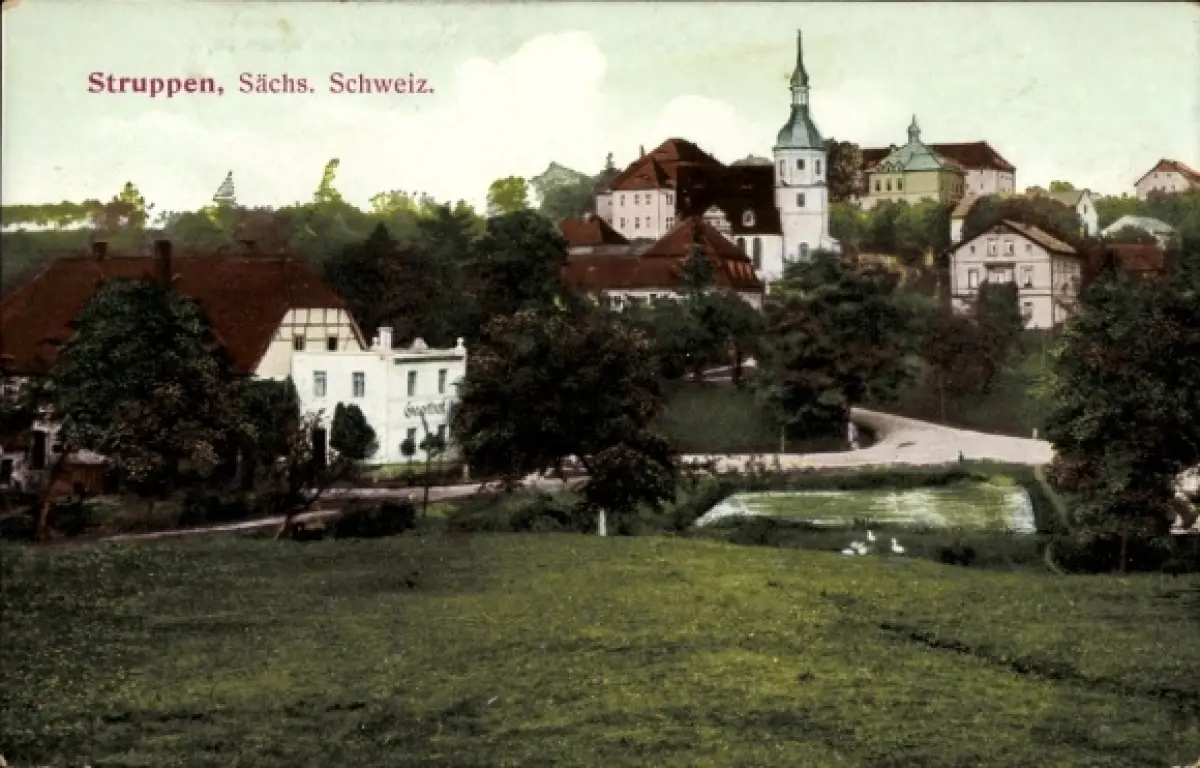 Ak Struppen Sächsische Schweiz, Sächs. Schweiz, Kirche, Häuser, Landschaft