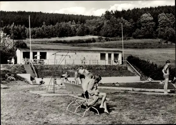 Ak Struth Helmershof Floh Seligenthal im Thüringer Wald, Bergschwimmbad, Badegäste