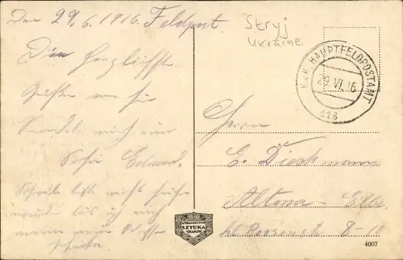 Zustand siehe Scan, gelaufen, 1916 - ca 14 cm X 9 cm