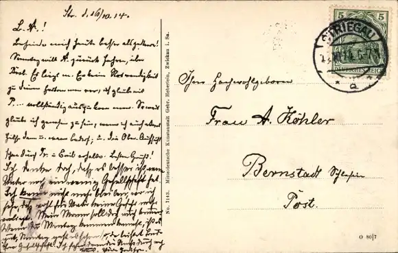 Zustand, siehe Scan, gelaufen, 1914 - ca 14 cm X 9 cm