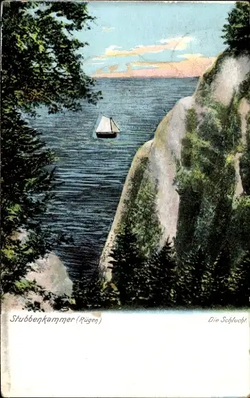 Ak Stubbenkammer Sassnitz auf Rügen, Schlucht, Segelboot