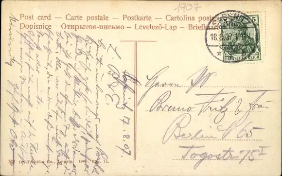 Zustand, siehe Scan, gelaufen, 1907 - ca 14 cm X 9 cm