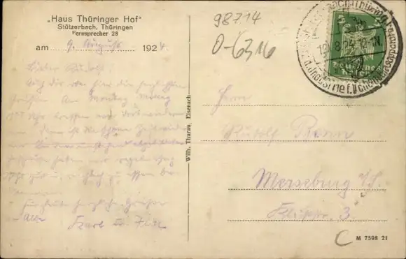 Zustand, siehe Scan, gelaufen, 1924 - ca 14 cm X 9 cm