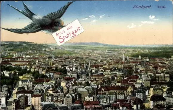 Ak Stuttgart in Baden Württemberg, Blick auf die Stadt aus der Vogelschau, Schwalbe