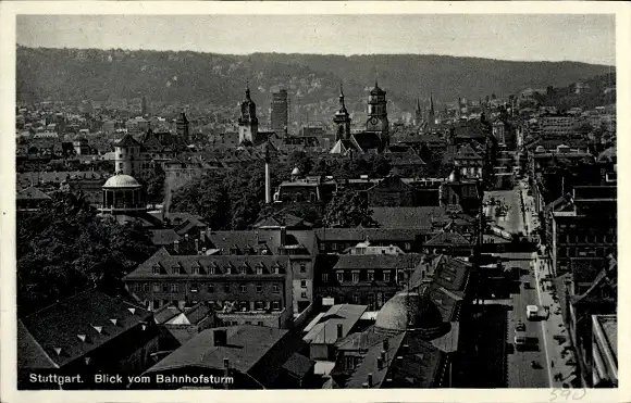Ak Stuttgart in Baden Württemberg, Blick vom Bahnhofsturm über die Stadt