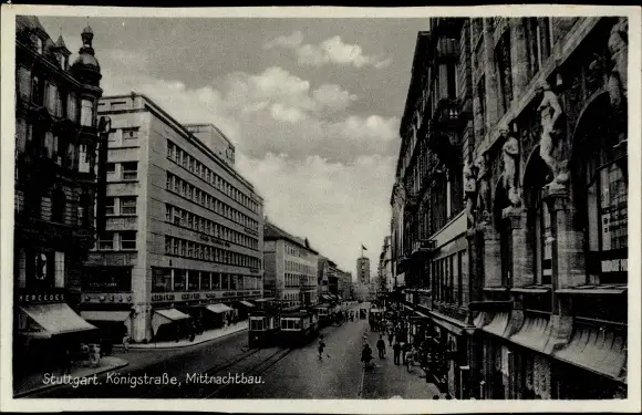 Ak Stuttgart in Baden Württemberg, Königstraße, Mittnachtbau, Straßenbahnen
