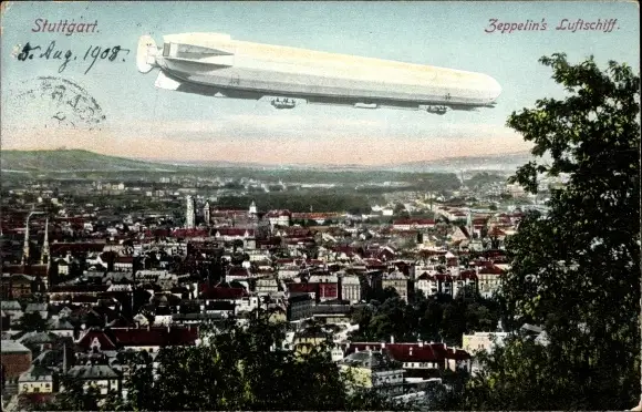 Ak Stuttgart in Baden Württemberg, Zeppelin über der Stadt