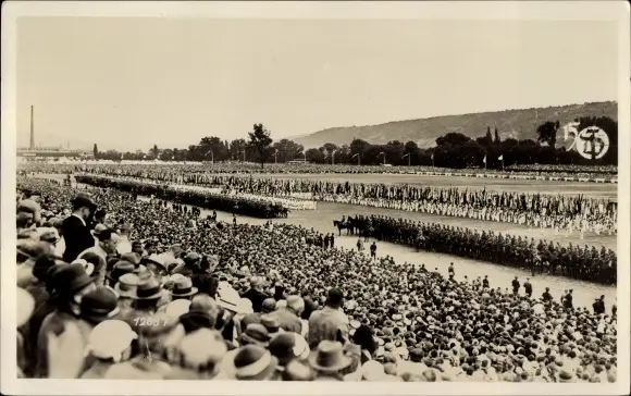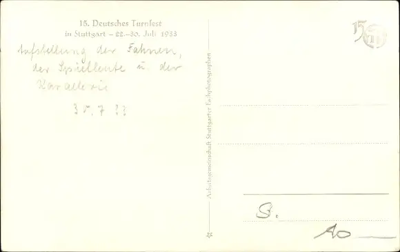Ak Stuttgart in Württemberg, 15. Deutsches Turnfest 1933, Aufstellung der Fahnen