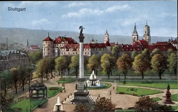 Ak Stuttgart in Württemberg, Altes Schloss, Springbrunnen, Säule