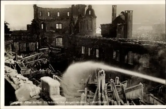 Ak Stuttgart in Württemberg, Altes Schloss, Teilansicht des ausgebrannten Nordostflügels