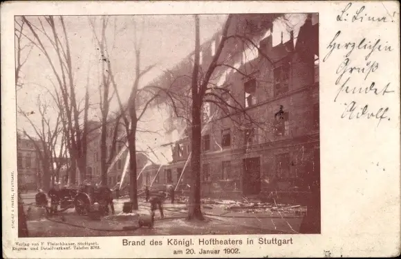 Ak Stuttgart in Württemberg, Brand des Königlichen Hoftheaters am 20. Januar 1902