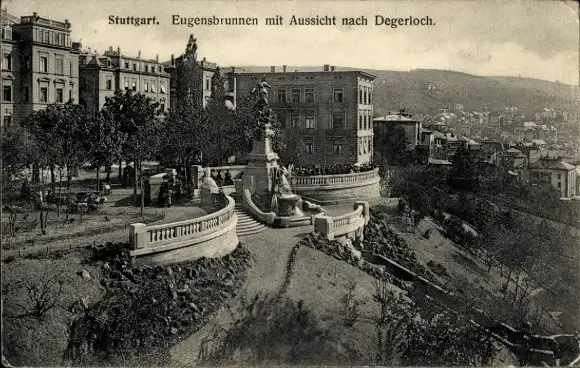 Ak Stuttgart in Württemberg, Eugensbrunnen mit Aussicht nach Degerloch