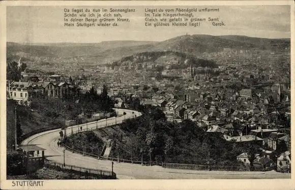 Ak Stuttgart in Württemberg, Gesamtansicht, Gedicht