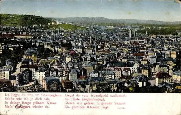 Ak Stuttgart in Württemberg, Gesamtansicht, Gedicht