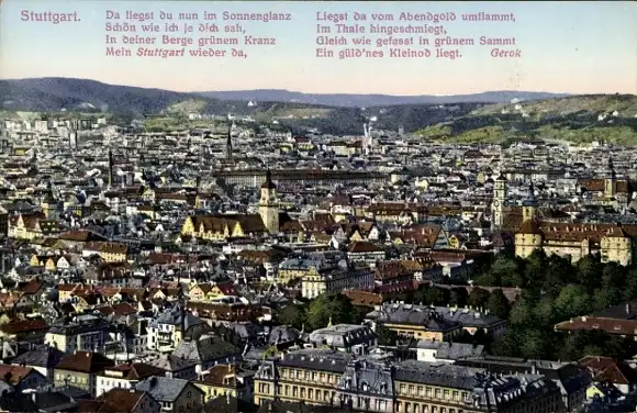 Ak Stuttgart in Württemberg, Gesamtansicht, Gedicht Mein Stuttgart