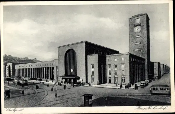 Ak Stuttgart in Württemberg, Hauptbahnhof, Straßenbahn