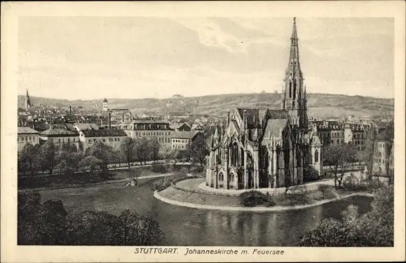 Ak Stuttgart in Württemberg, Johanneskirche mit Feuersee