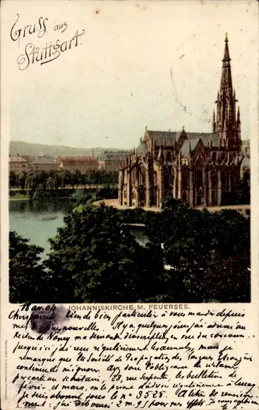 Ak Stuttgart in Württemberg, Johanniskirche, Feuersee