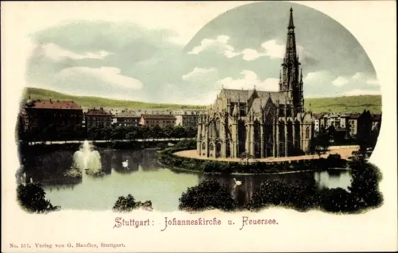 Ak Stuttgart in Württemberg, Johannneskirche, Feuersee