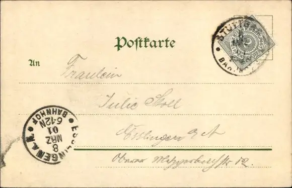 Zustand, siehe Scan, gelaufen, 1901 - ca 14 cm X 9 cm