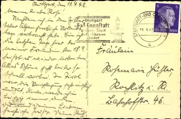 Zustand, siehe Scan, gelaufen, 1942 - ca 14 cm X 9 cm