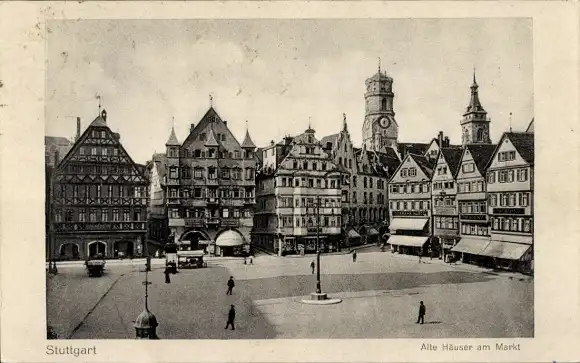 Ak Stuttgart in Württemberg, Markt, Alte Häuser