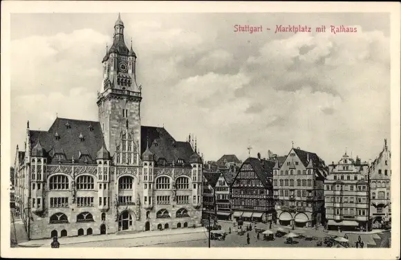 Ak Stuttgart in Württemberg, Marktplatz mit Rathaus