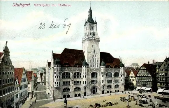 Ak Stuttgart in Württemberg, Marktplatz mit Rathaus