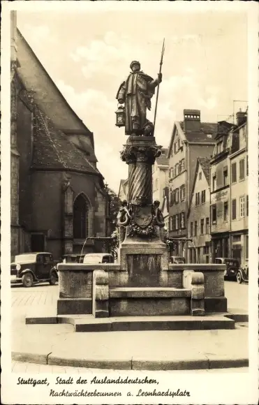 Ak Stuttgart in Württemberg, Nachtwächterbrunnen a. Leonhardsplatz