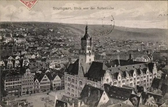 Ak Stuttgart in Württemberg, Panorama von der Stiftskirche gesehen