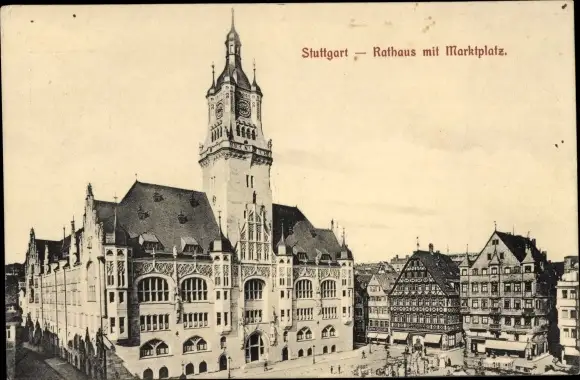 Ak Stuttgart in Württemberg, Rathaus mit Marktplatz