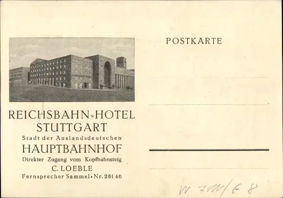 Ak Stuttgart in Württemberg, Reichsbahn Hotel, Hauptbahnhof