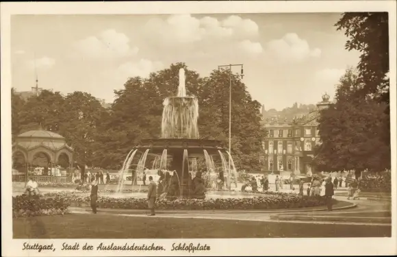 Ak Stuttgart in Württemberg, Schlossplatz, Brunnen