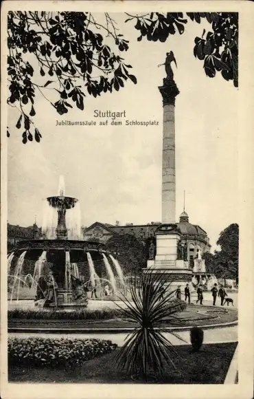 Ak Stuttgart in Württemberg, Schlossplatz, Jubiläumssäule, Springbrunnen