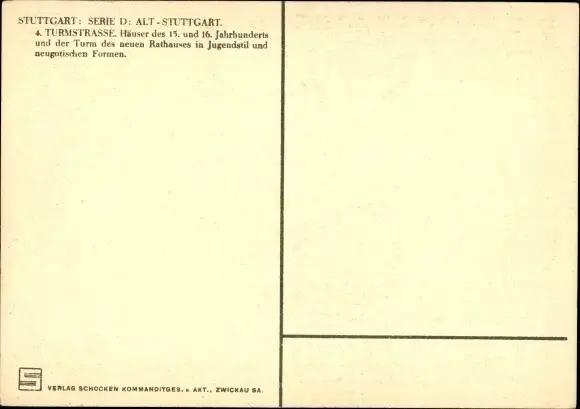 Ak Stuttgart in Württemberg, Serie: Alt-Stuttgart, Turmstraße, Turm neues Rathaus