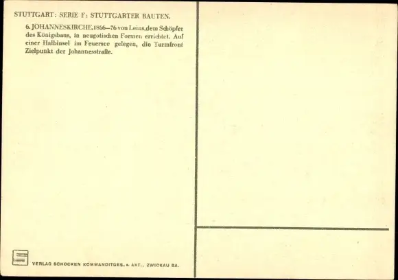 Ak Stuttgart in Württemberg, Serie: Stuttgarter Bauten, Johanneskirche