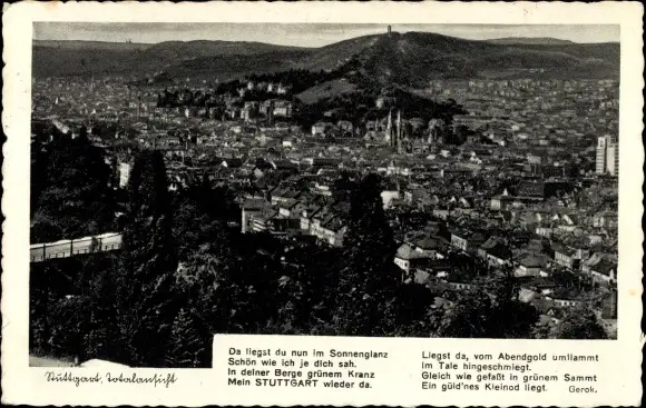 Ak Stuttgart in Württemberg, Totalansicht, Gedicht Gerok